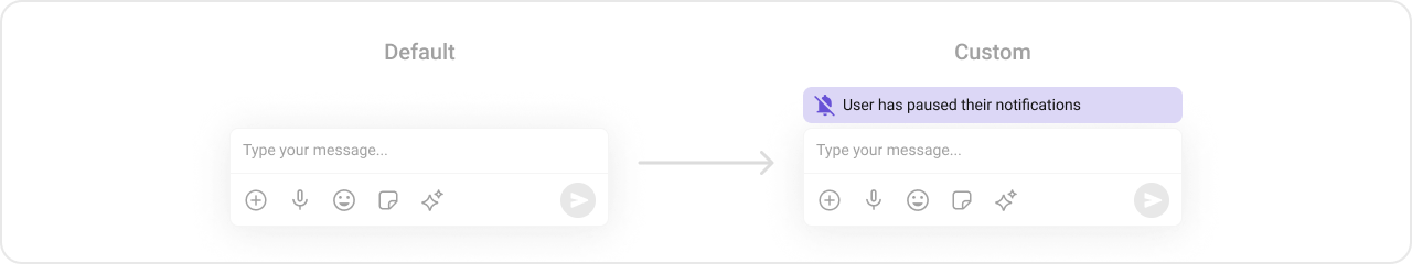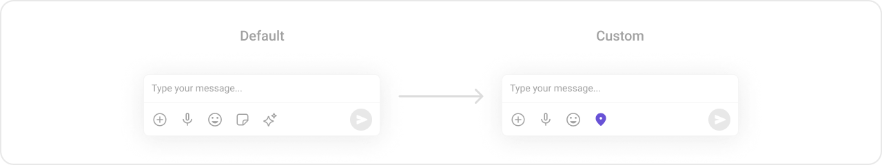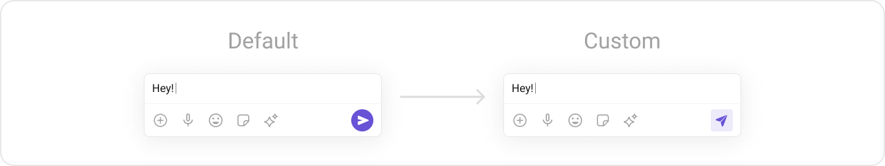 To fit your app’s design requirements, you can customize the appearance of the MessageComposer component. We provide exposed methods that allow you to modify the experience and behavior according to your specific needs.