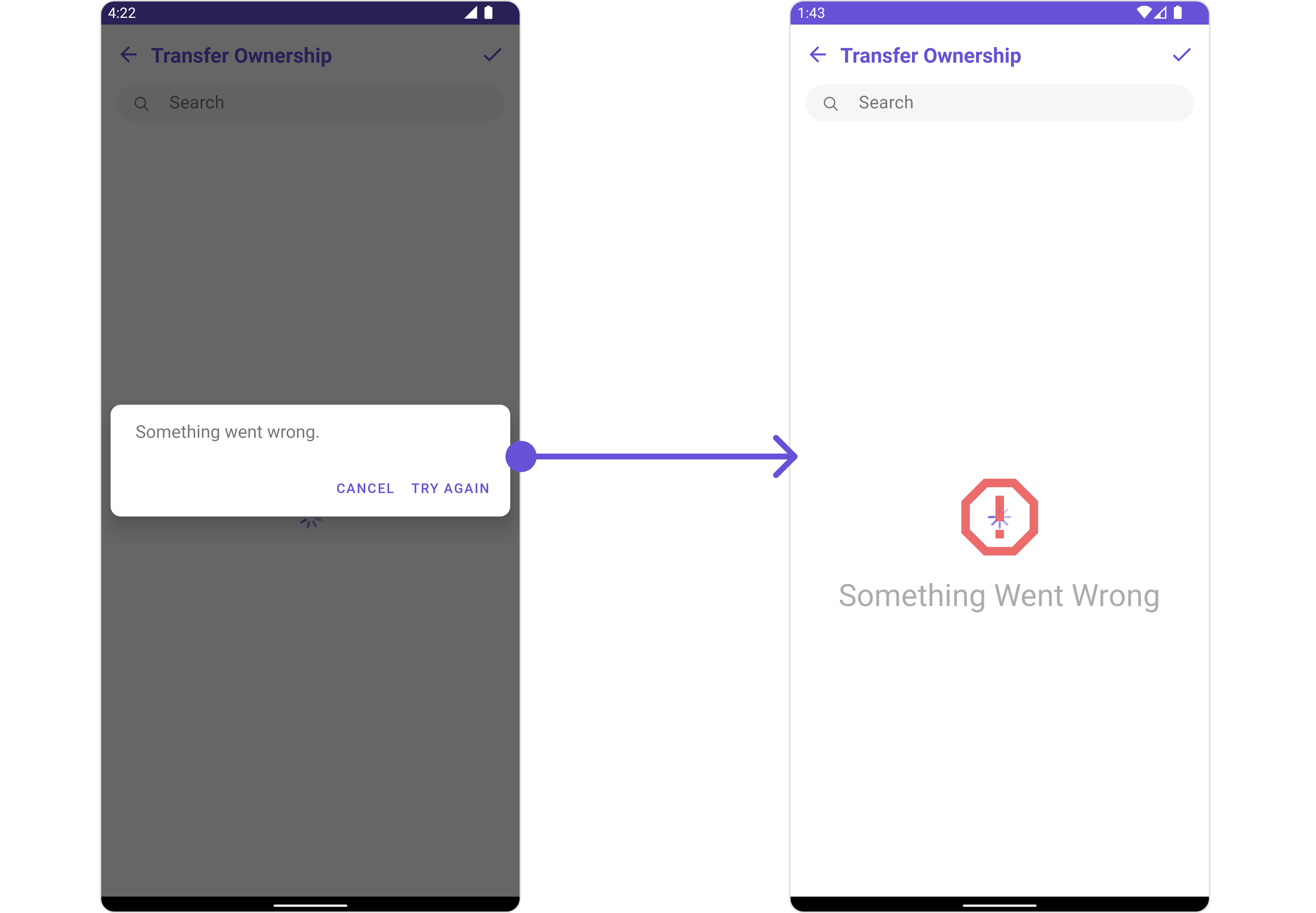 To fit your app’s design requirements, you can customize the appearance of the Transfer Ownership component. We provide exposed methods that allow you to modify the experience and behavior according to your specific needs.Style