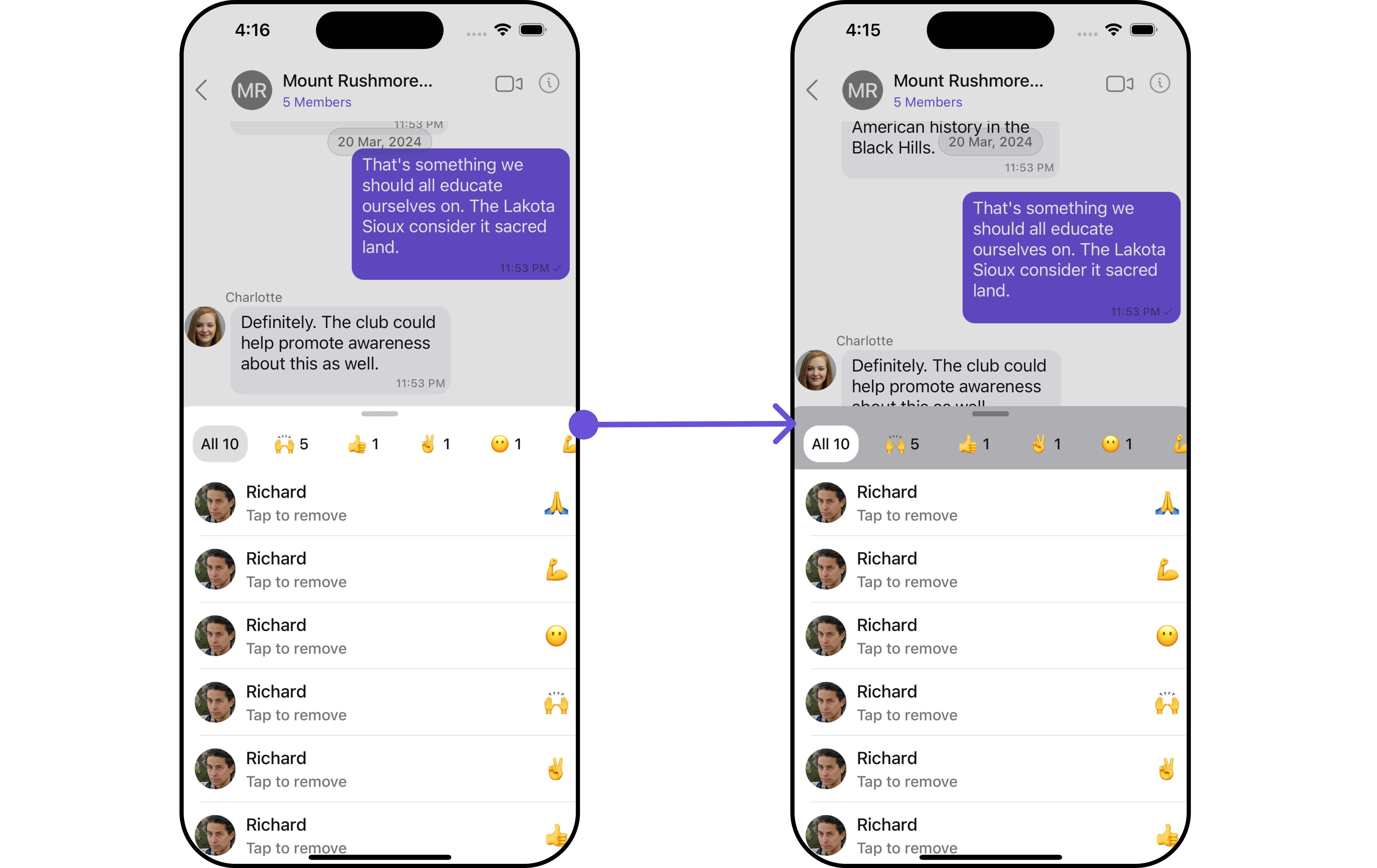 For customization aligned with your app’s design, you can adjust the appearance of the Reaction List component using our accessible methods. These methods enable you to tailor the experience and behavior to suit your specific needs.