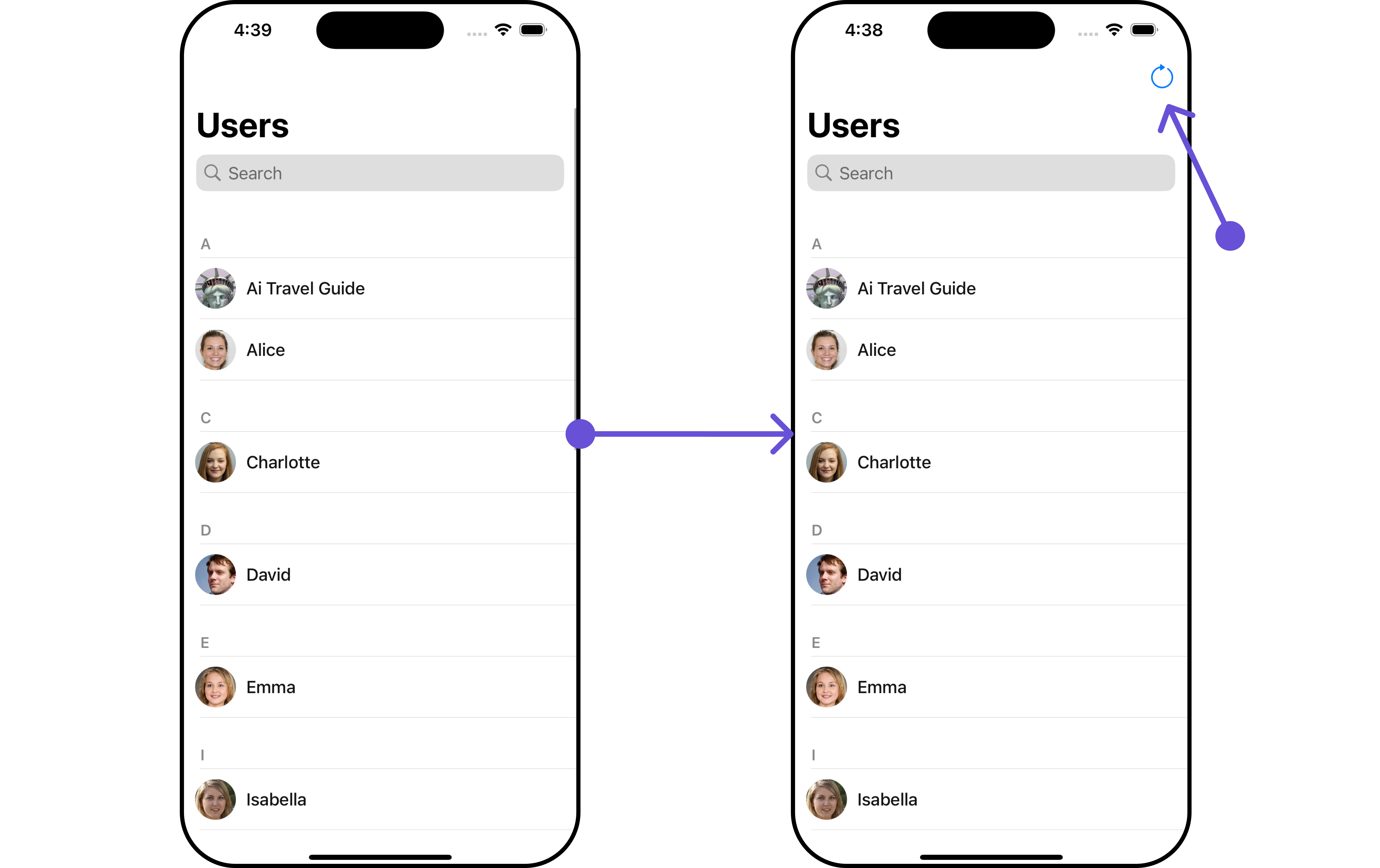 To fit your app’s design requirements, you can customize the appearance of the users component. We provide exposed methods that allow you to modify the experience and behavior according to your specific needs.